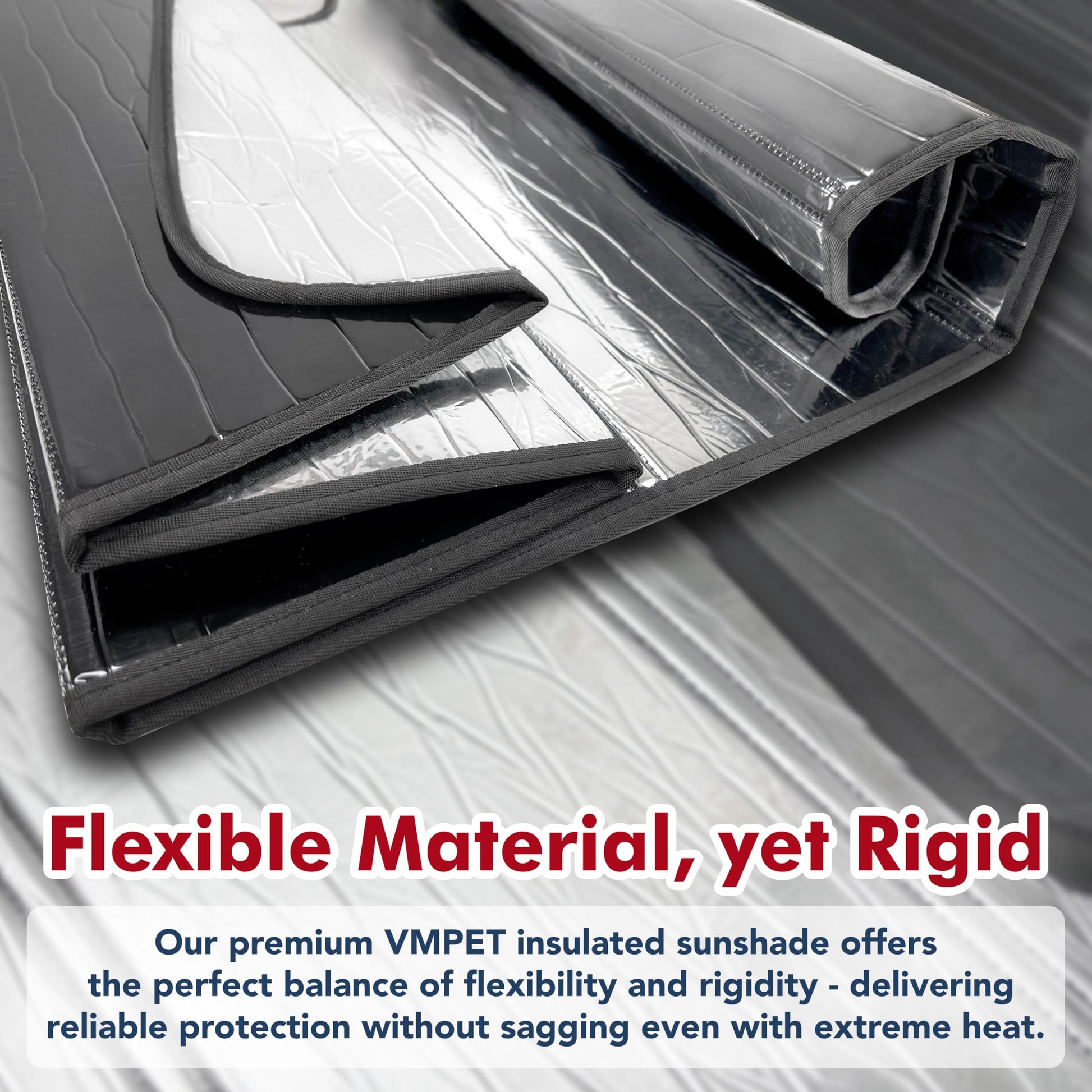 - Built Tough to Last: Constructed with high-quality, multi-layer insulation (foam core, insulated back layers, and reflective mylar film) for long-lasting durability and effective heat reflection. Featuring a sturdy outer layers and a soft interior, this sunshade combines rigidity and flexibility for easy handling and reliable performance.